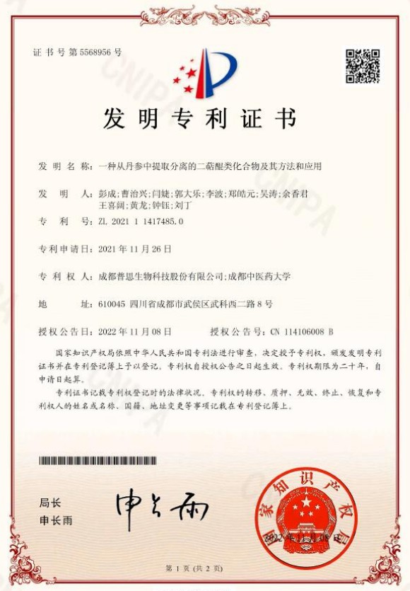 2019年 普思作為主要完成單位之一申報的“基于構效關(guān)系的中藥活性物質(zhì)發(fā)現及其開(kāi)發(fā)應用”項目,榮獲四川省科學(xué)技術(shù)廳科技進(jìn)步一等獎。