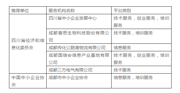2017年度國家中小企業(yè)公共服務(wù)示范平臺名單