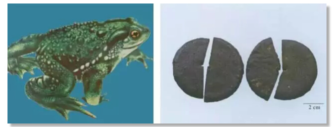 △蟾酥補腎益精,養陰潤肺。用于病后體弱,神疲乏力,心悸失眠,盜汗,癆嗽咳血。(圖片來(lái)源人民衛生出版社《常用中藥鑒別真偽》)