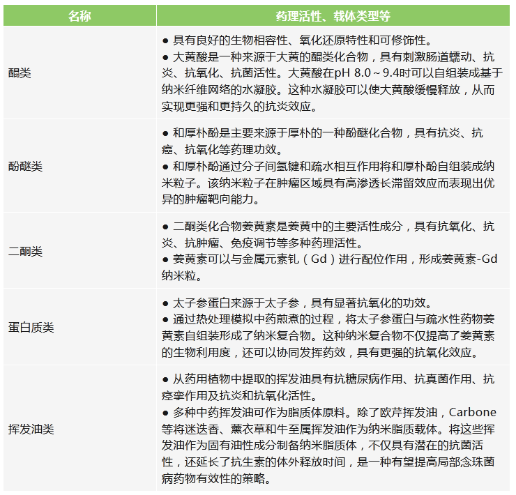 中藥活性成分開(kāi)發(fā)為藥物遞送納米載體具有顯著(zhù)的優(yōu)勢: