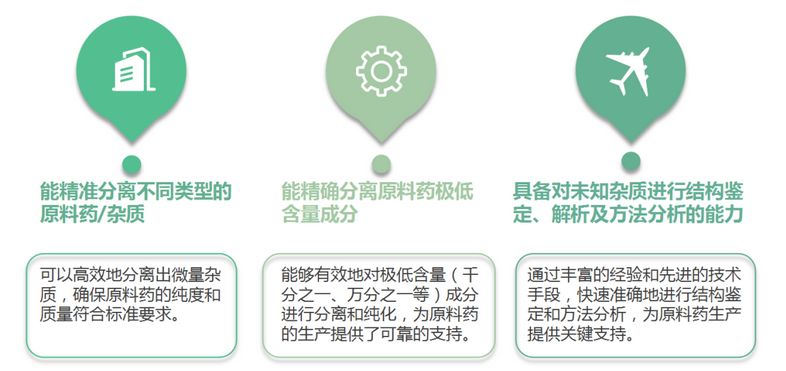 雜質(zhì)研究是原料藥研究的重要環(huán)節,它貫穿于整個(gè)藥品研究的始終。雜質(zhì)在原料藥中含量較低,利用直接測定法無(wú)法實(shí)現雜質(zhì)的定性定量分析。為實(shí)現這一要求,需要獲取高純度單一成分的雜質(zhì),需要消耗大量時(shí)間。我們有成熟的項目經(jīng)驗,可利用多種技術(shù)幫助客戶(hù)解決這一難題。