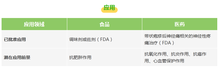 1.鎮痛作用:辣椒素通常被用于骨關(guān)節炎、類(lèi)風(fēng)濕關(guān)節炎、糖尿病神經(jīng)病變、非糖尿病周?chē)窠?jīng)病變和帶狀皰疹后神經(jīng)痛。研究表明,辣椒素可以選擇性結合具有高通透性的Ca2+陽(yáng)離子通道TRPV1,促進(jìn)P物質(zhì)消耗,導致受體功能降低或損傷,從而達到鎮痛的效果。