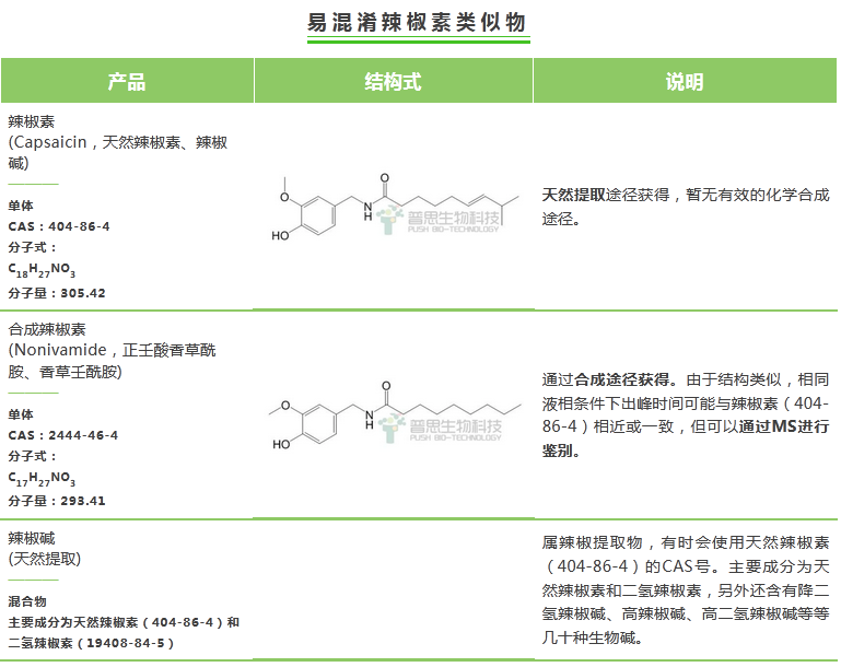 辣椒素(Capsaicin)是一種無(wú)色無(wú)味的生物堿類(lèi)化合物。其作為辣椒中的主要活性成分,是TRPV1受體激動(dòng)劑,具有減輕疼痛、抗氧化、抗炎、神經(jīng)保護和抗癌作用,近年來(lái)在醫藥食品、化妝品等領(lǐng)域的研究中受到了廣泛關(guān)注。本文將深入介紹辣椒素的基本信息、理化性質(zhì)、藥理活性作用,及其在醫藥、食品等領(lǐng)域的應用。(ps.文末有易混淆辣椒素類(lèi)似物區分要點(diǎn)哦?。?/span>