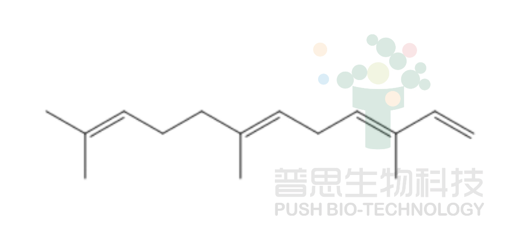 用途:茶、水果、花等多種植物的主要揮發(fā)性成分,呈花果香味,具有抗抑郁、抗菌消炎及自由基清除等活性,蘋(píng)果、梨等水果的虎皮病與α-法尼烯代謝以及活性氧積累密切相關(guān)
