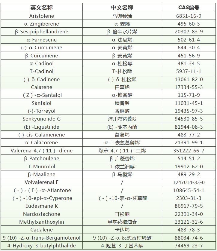 用途:沉香、廣藿香、黃芩、川木香等多種植物的主要揮發(fā)性成分,具有顯著(zhù)的抗氧化、抗炎和抗腫瘤等活性