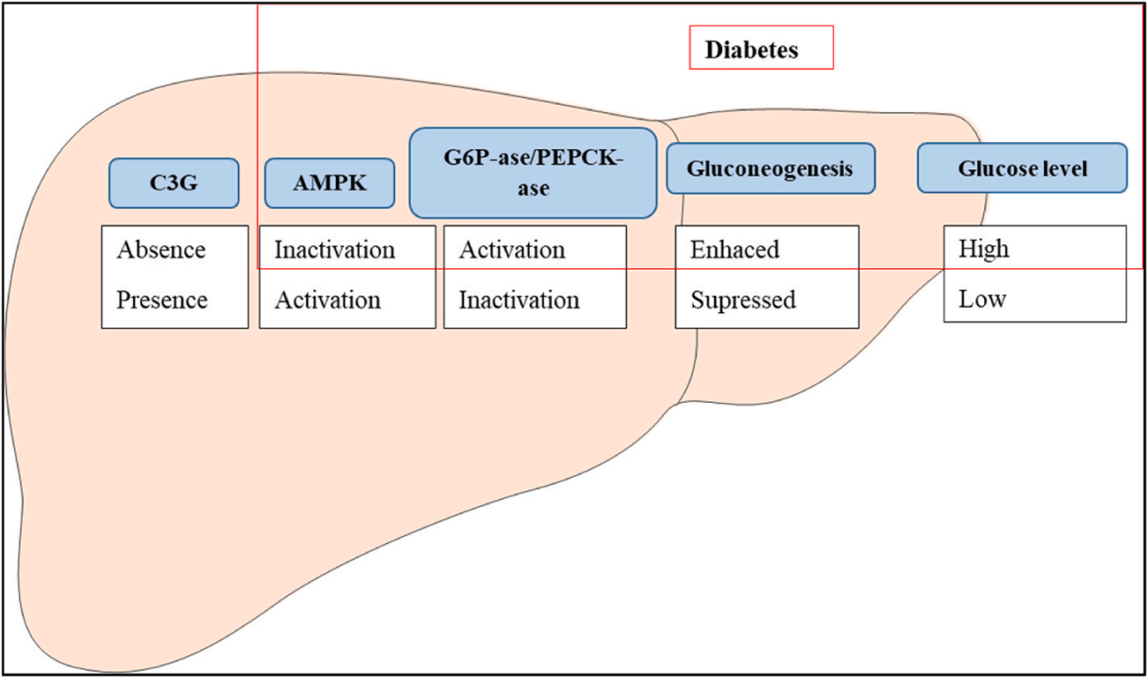 C3G通過(guò)激活AMPK途徑抑制肝臟糖異生,并能誘導氧化應激下的癌細胞衰老和凋亡。