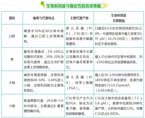 C3G的臨床應用潛力受到其理化性質(zhì)的限制,主要是低穩定性和低生物利用度。近期的研究重點(diǎn)之一是開(kāi)發(fā)新策略以克服這些挑戰。